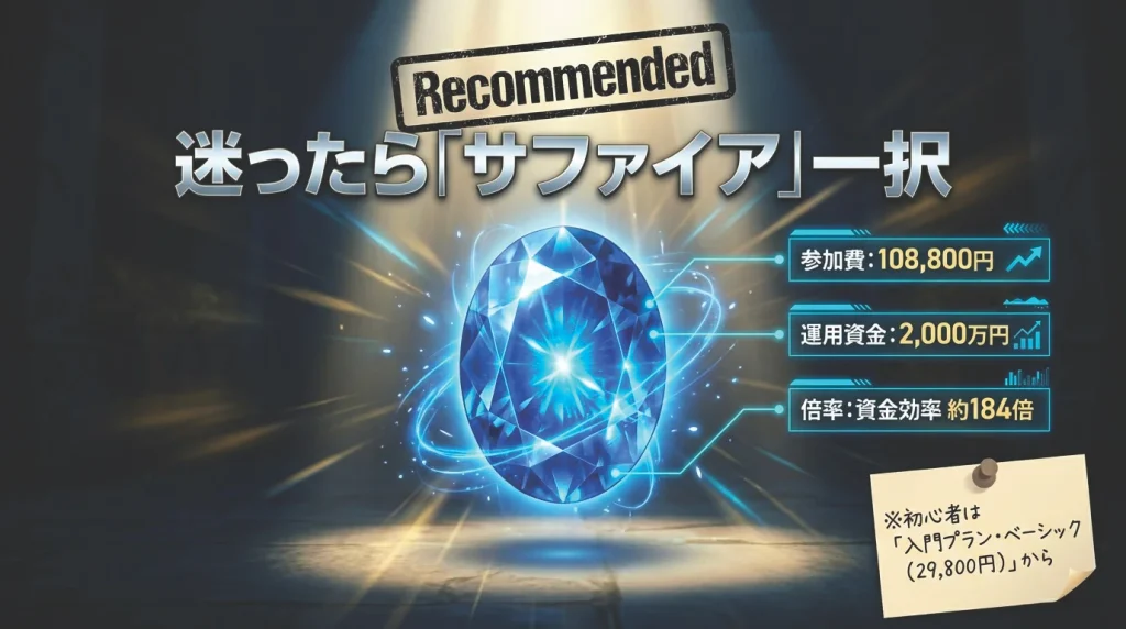 - コスパ重視:チャレンジプラン サファイア(2,000万円・108,800円)