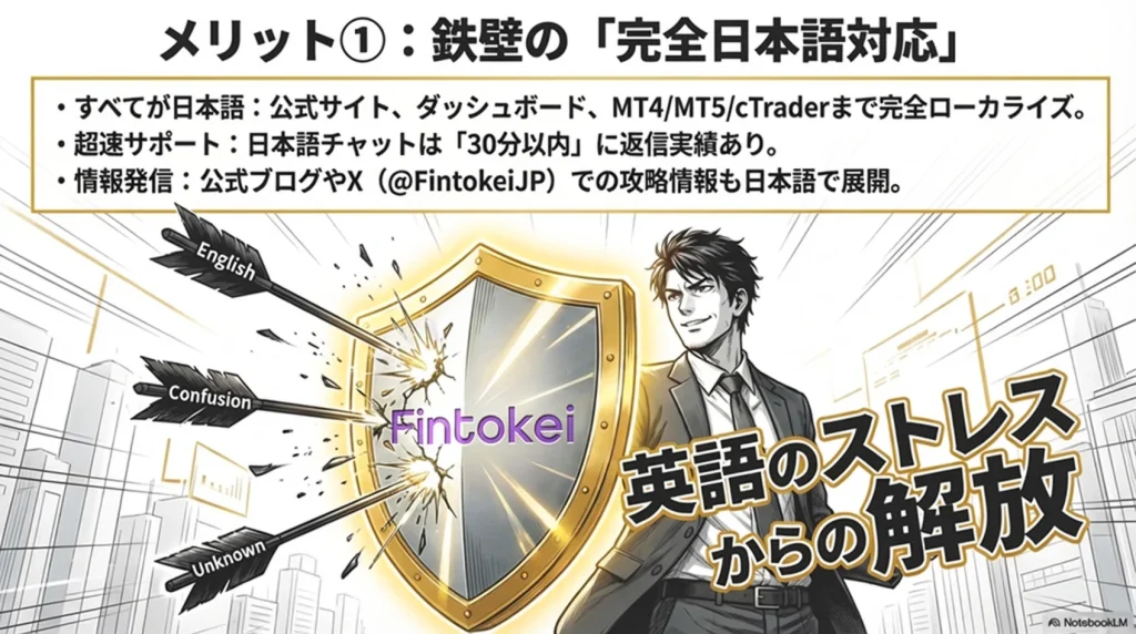 Fintokeiが日本人トレーダーに人気がある最大の理由は、日本語対応の充実度にあります。