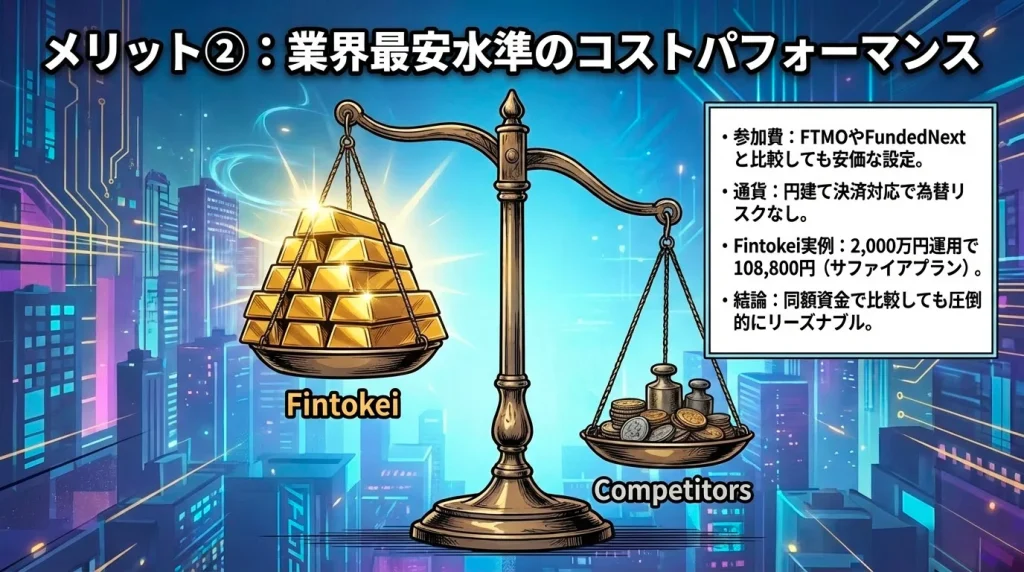 Fintokeiは、日本人トレーダーにとって最も始めやすいプロップファームです。