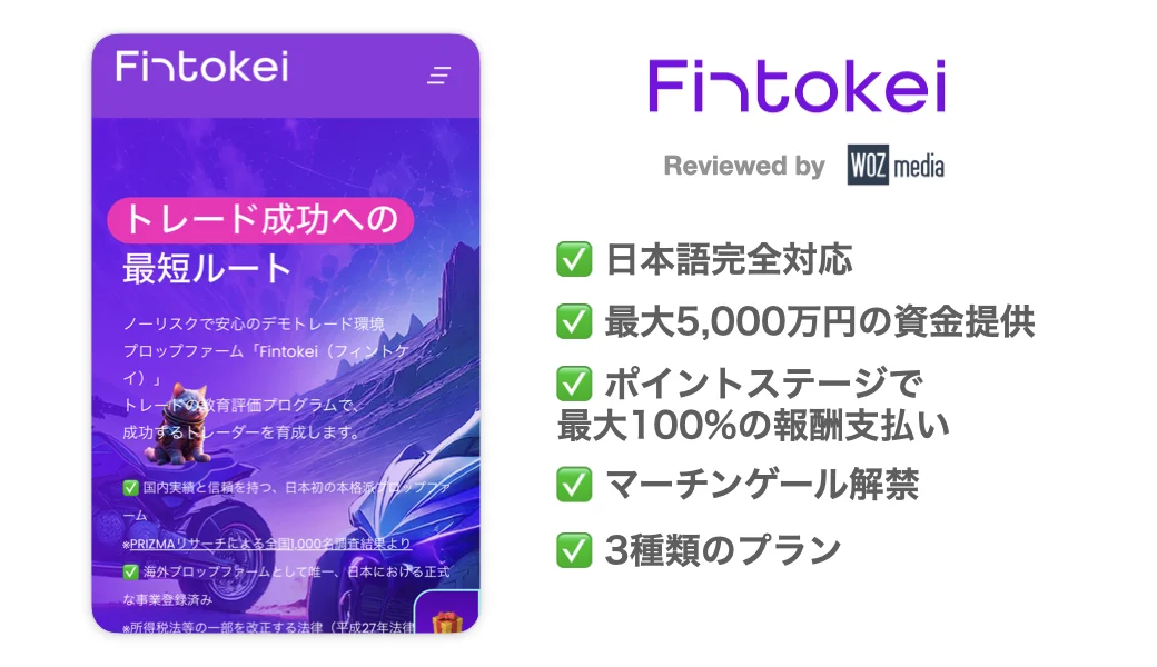 「プロップファームに興味があるけど、どこから始めればいいかわからない」という方は、まずFintokeiから試してみてはいかがでしょうか。