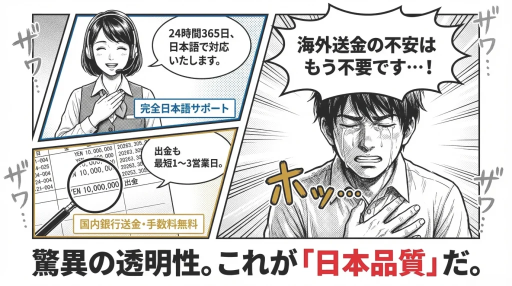 👉国内法人運営の安心感。サイト、サポート、すべて日本語で完結 - 海外サービスに不安を感じる人