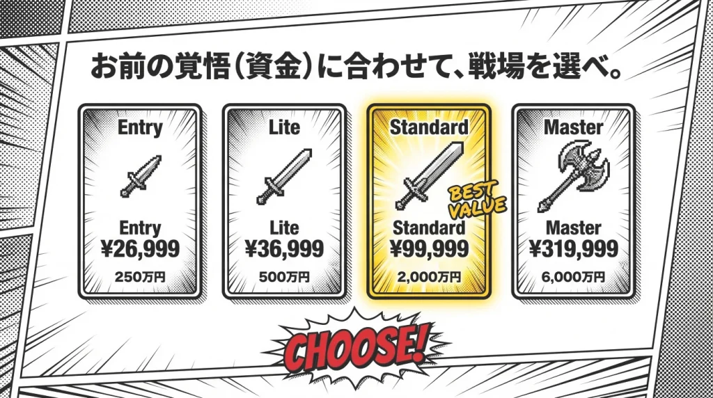 6種類のプランから、自分に合ったものを選びましょう。初心者はEntryまたはLiteプラン、コスパ重視ならStandardプランがおすすめです。