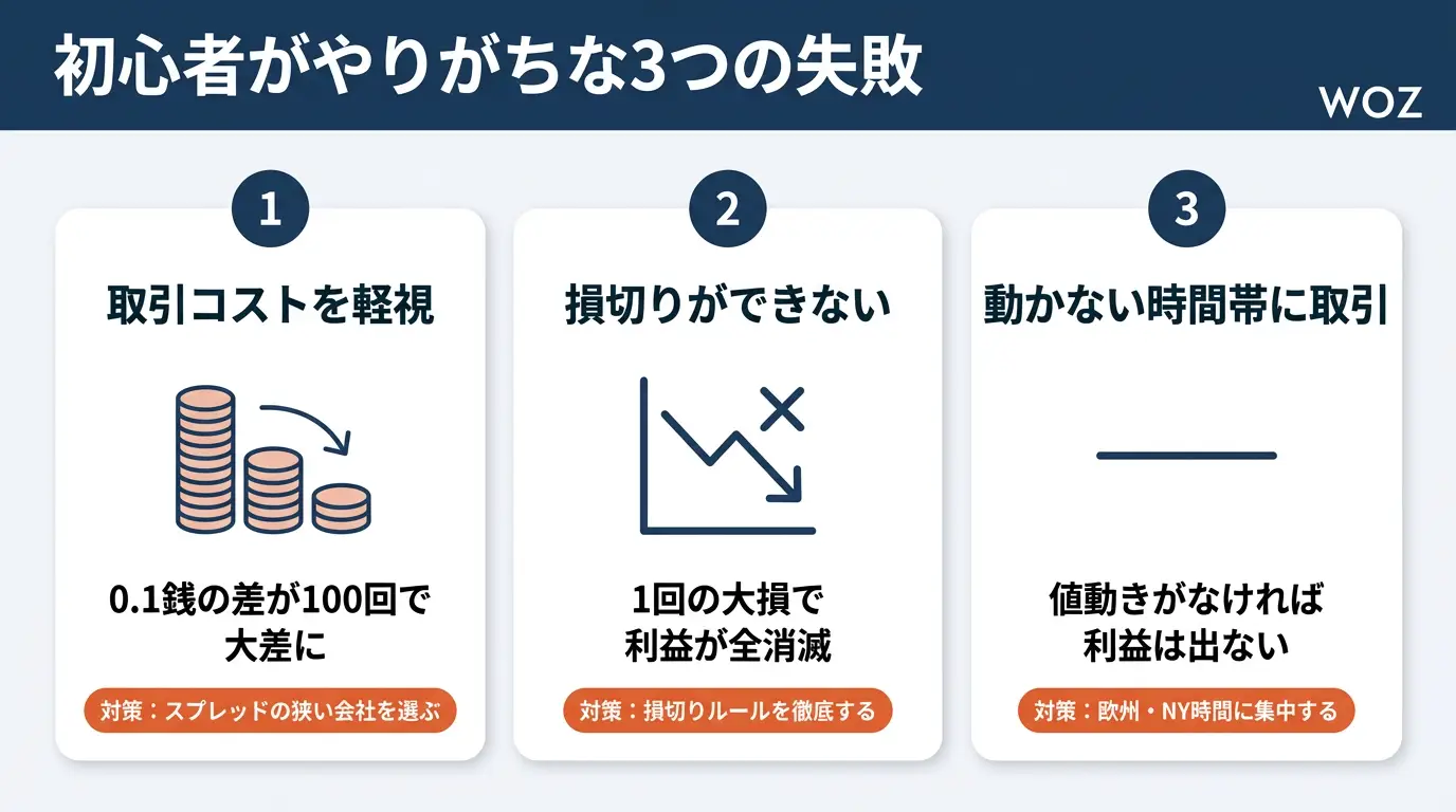 スキャルピング初心者が陥りやすい失敗パターンを3つ紹介します。