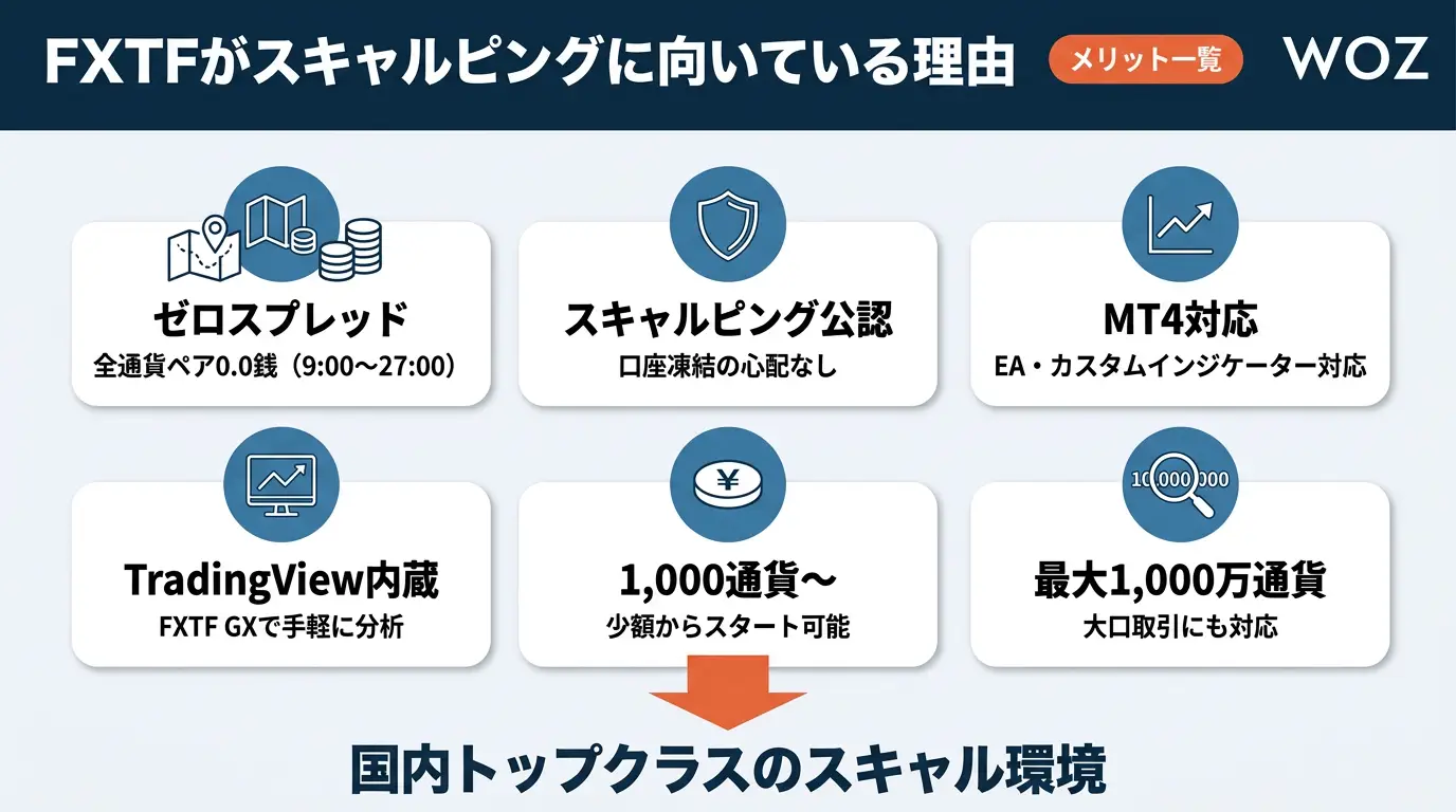 FXTFは2025年4月のスキャルピング公認、2026年1月のゼロスプレッド導入により、国内でもトップクラスにスキャルピングしやすいFX会社となりました。
