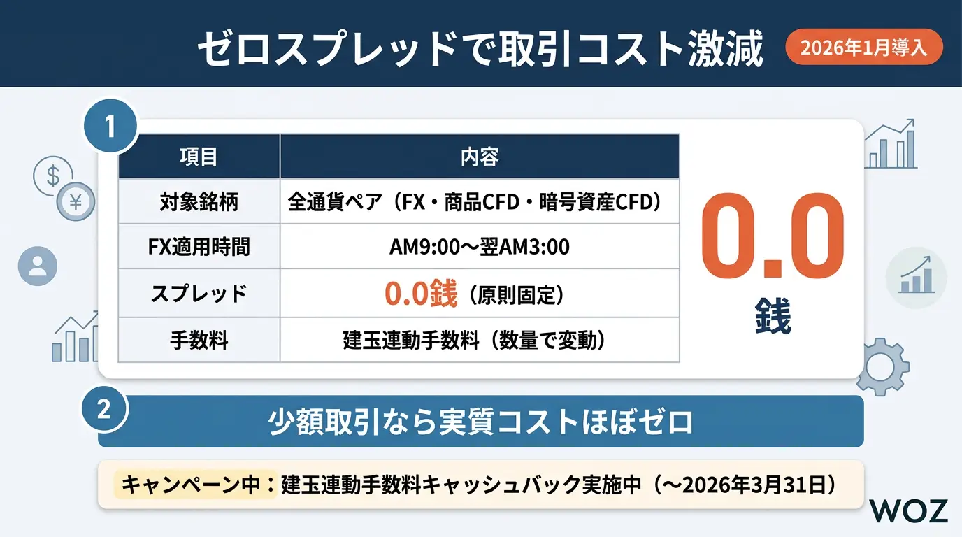 2026年1月導入「ゼロスプレッド」で取引コスト激減