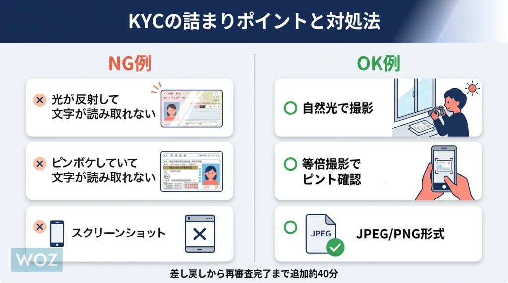 | KYC書類アップロード〜承認通知 | 約2時間15分 | 平日13時台に申請。夜間・週末は翌営業日になるケースあり |