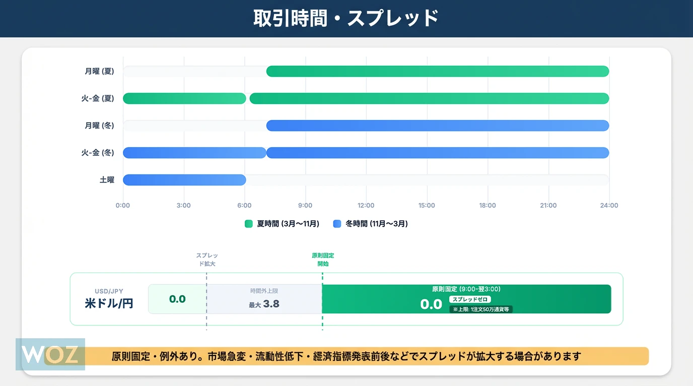ゼロスプレッドが適用される時間帯は以下の通りです。