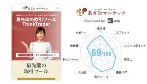 | 取引ツール | 8/10 | PC版・スマホアプリともに高機能で使いやすい。 36種類のテクニカル指標とカスタマイズ性が魅力。 |