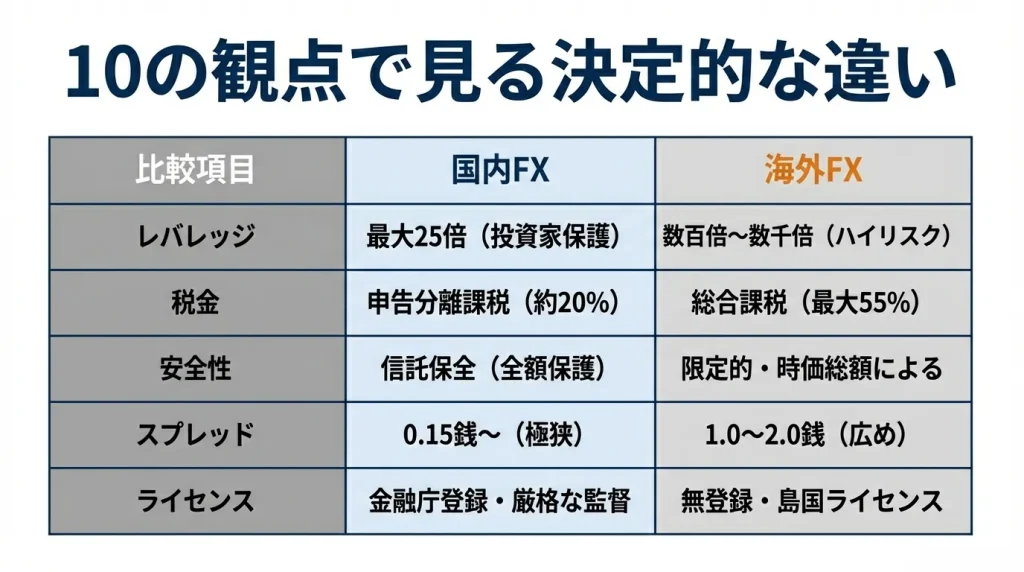 国内FXと海外FXの違いを10の観点で比較