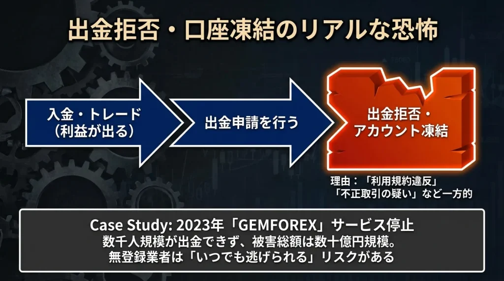出金拒否が発生するリスクがある
