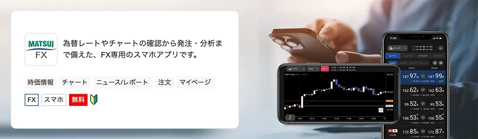 スマホ向けには「松井証券 FXアプリ」が提供されていて、シンプルでありながらトレードに必要十分な機能が備わっています。
