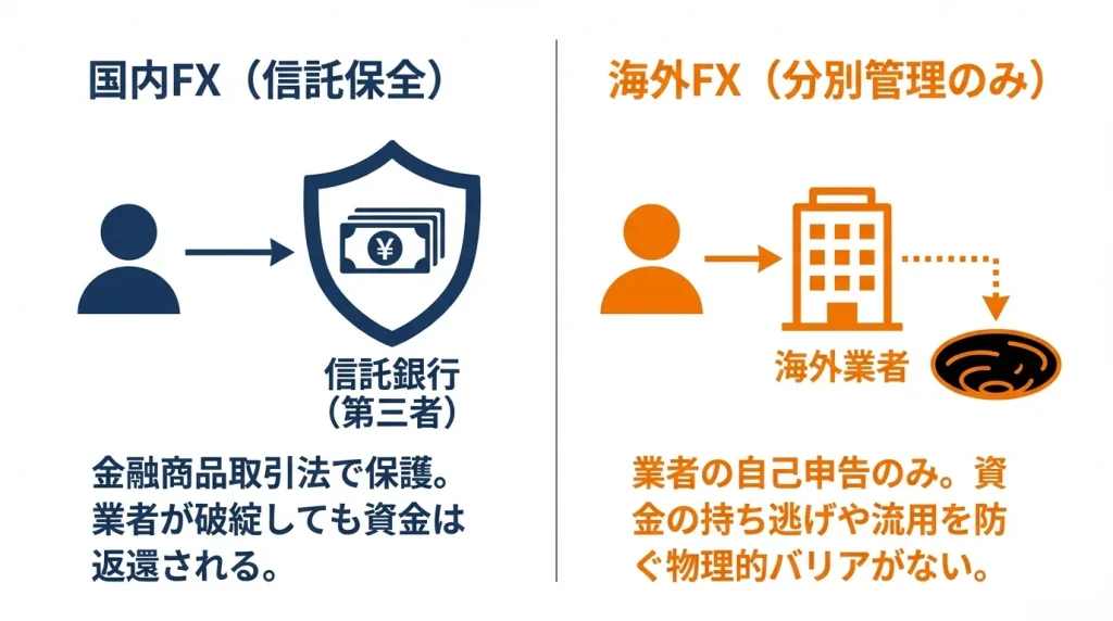 問題は、海外業者の「分別管理」の実態が不透明な場合があることです。