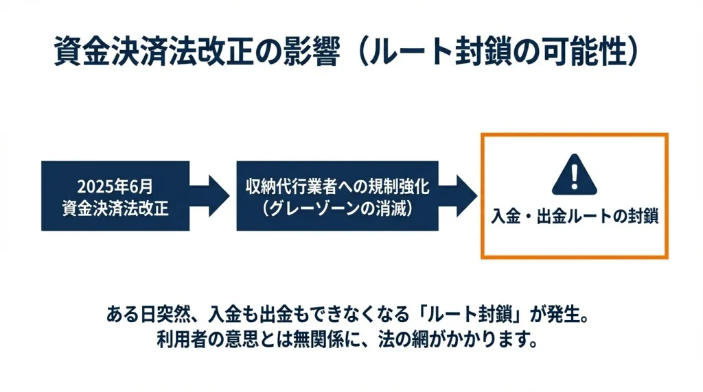 突然入出金できなくなる?資金決済法改正と決済ルート封鎖リスク