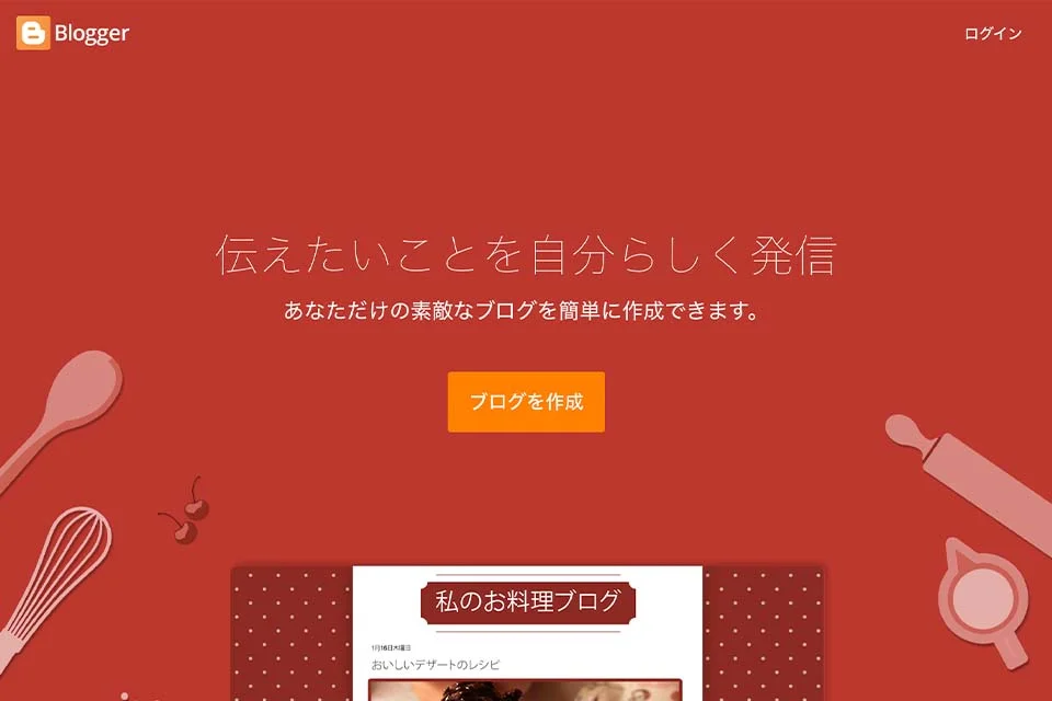 - Blogger:Google運営で広告なし。AdSense収益化も自由にできる