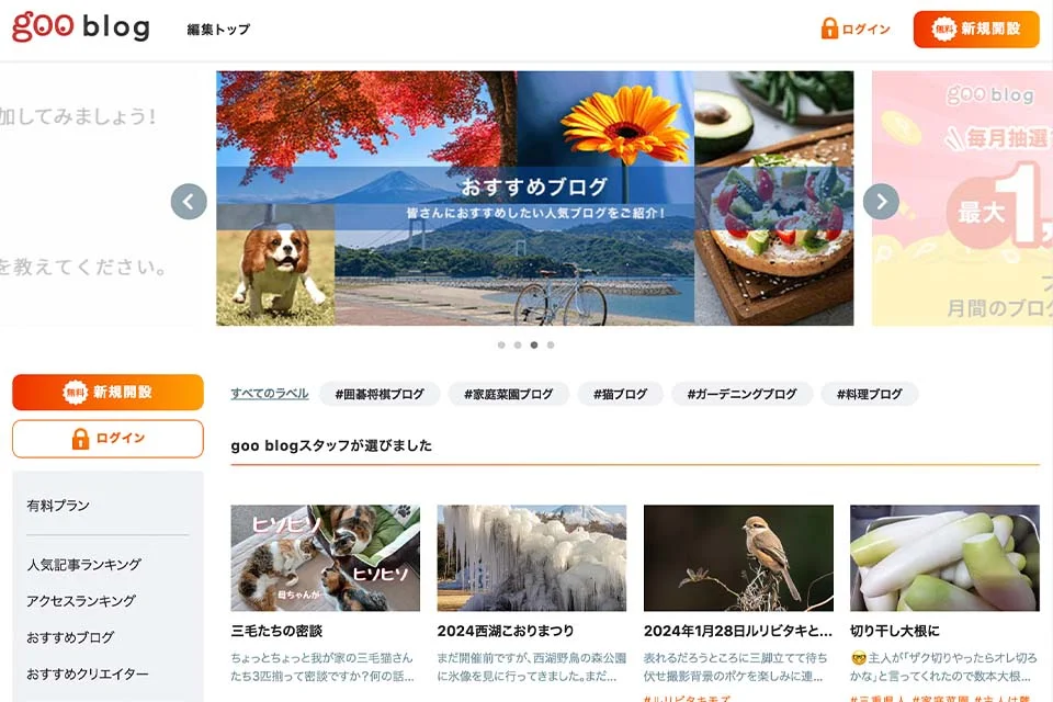 - gooブログ:NTT運営のシンプルブログ。初心者向けだが収益化には不向き