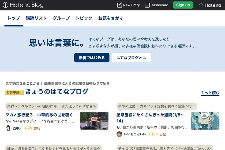 - はてなブログ:はてなブックマークとの連携で拡散力抜群。初心者でも交流しやすいコミュニティが魅力