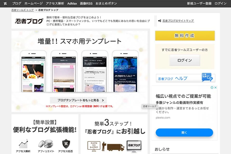 忍者ブログは、忍者ツールズが運営している無料ブログサービスで、最大の特徴は充実したアクセス解析機能が無料で使えることです。Googleアナリティクス並みの機能を備えた独自のアクセス解析ツールが標準装備されているので、アクセス状況を簡単に確認できます。