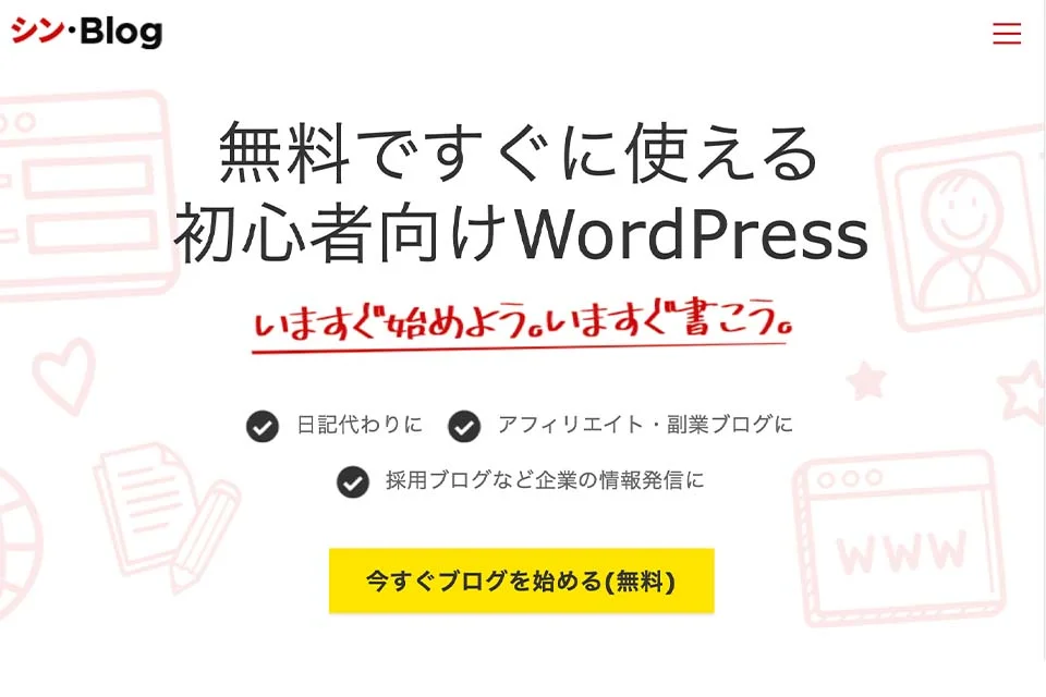 - シン・ブログ:無料でWordPressが使える新サービス。本格的なブログを手軽に開設